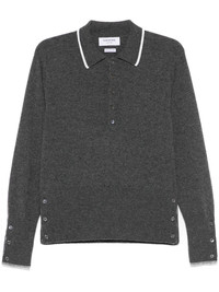 intarsia cashmere long-sleeves polo shirt Highlights - Medium grey - Front button placket - Side button fastening - Buttoned cuffs - Signature grosgrain side tabs Made in United Kingdom Composition Cashmere 100% SIZE & FIT Model measurements Height 6 ft 2 in(1.87 m) Bust/Chest 38.18 in(97 cm) Hips 36.61 in(93 cm) Waist 29.13 in(74 cm) FittingInformation Designed for a slim fit, this polo shirt offers a comfortable fit that sits just away from the body The ribbed hem offers a close, comfortable fit Made with a midweight knit, this piece offers some stretch Washing instructions Dry Clean Only