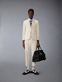 Cut in narrow wale corduroy, this classic sport coat brings texture and clarity to a disciplined silhouette. A sharp notched lapel and crisp tone complement the season’s black tie–inspired precision. Designed to pair with the matching trouser or wear as a separate, it offers versatility within a tailored vocabulary. Front self-covered button closure Contrast felt undercollar Welt chest pocket Flap hand pockets Three interior pockets Buttoned cuffs with signature grosgrain trim Double back vent with internal RWB grosgrain and button connector Tricolor lining Signature striped grosgrain loop tab Fit 1 - Classic fit Model is 6'1" (185cm), wearing size 1 100% Cotton Lining: 100% Cupro Made in Italy MJC001A-F0920-113