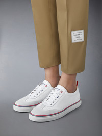 Thom Browne’s take on casual sneakers built for all-day comfort. Pair them with any of our signature shorts or trousers. Lace up Signature striped grosgrain loop tabs Combo 1: 100% Calf Suede Leather Upper: 100% Calf Leather Sole: 100% Rubber Lining: 100% Calf Leather Made in Italy MFD137A-06107-100