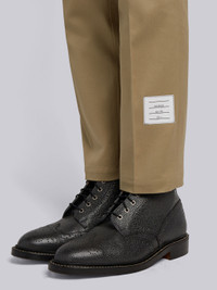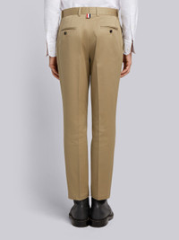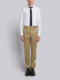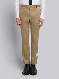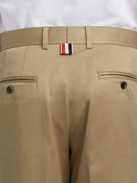 DETAILS & FIT Our Cotton Twill Unconstructed Chino Trouser. The classic shortened hem pays homage to Thom Browne’s distinguished tailoring. Tab closure Creased legs Clean cuffs Name tag applique above left cuff Beltloops Slip side pockets Button fastening back welt pockets Signature striped grosgrain loop tab at back waist Model is 6' 1" (185cm), wearing size 0 100% Cotton Made in Japan MTU187A-03788-275