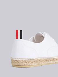 DETAILS & FIT Heritage trainer espadrille in white canvas with braided raffia sole. White lace up closure at tonal metal eyelets. Signature striped grosgrain loop tabs at heels. Upper: 100% Cotton Sole: 100% Rubber Lining: 100% Cotton Made in Spain MFD252A-F0102-100 - HEEL: 3.0cm - Sole height: 2.5cm