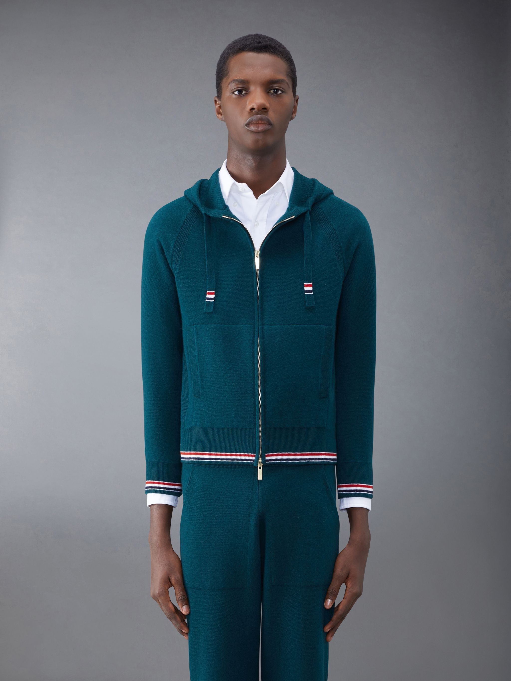 Cashmere Stripe Zip Front Hoodie