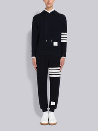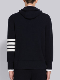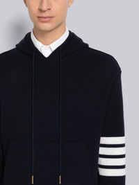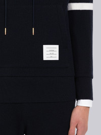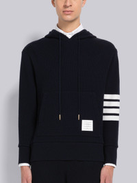 DETAILS & FIT Pullover hoodie in navy cashmere wool waffle with engineered 4-bar stripe detail at left sleeve in white. Drawstring hood with metal aglets. Kangaroo pocket with name tag applique. Model is 6' 1" (185cm), wearing size 1. 50% Cashmere, 50% Wool Made in Italy MJT324AJ0012415