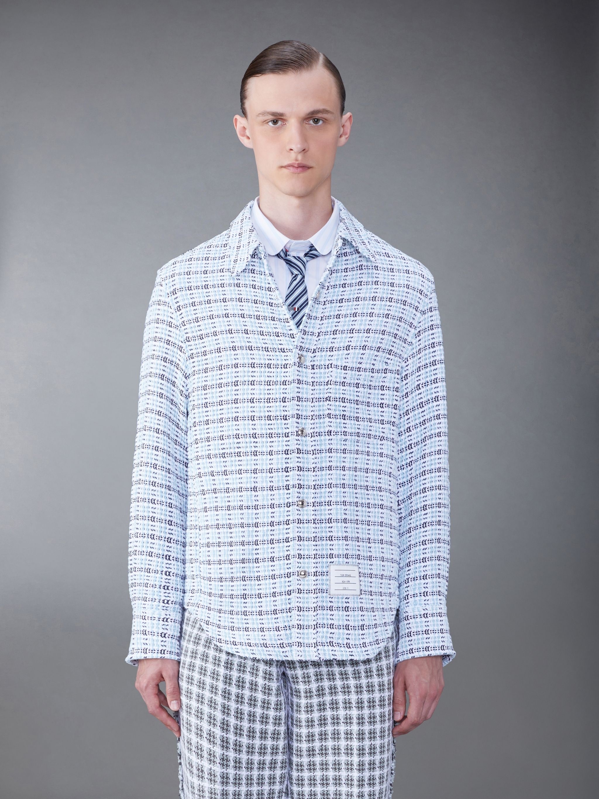 Check Crochet Tweed Shirt Jacket