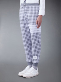 DETAILS & FIT Leisurewear made artful. These breathable sweatpants are adorned with our iconic 4-Bar stripe detailing emulated after varsity stripes. Featuring crisp tailoring and a playful gingham pattern, this limited-edition piece will serve as a staple in your casual spring wardrobe. Drawstring waistband with silver tone aglets 4-Bar detailing Slip side pockets Name tag applique above left hem Signature striped grosgrain loop tab Model is 6' 1" (185cm), wearing size 1 100% Cotton Combo1: 96% Cotton, 4% Elastane MJQ195A-J0116-055
