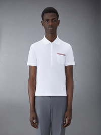 DETAILS & FIT Inspired by East Coast preppy icons, our Pique Pocket Polo is a sophisticated take on a classic silhouette. Partial front button placket Spread collar Patch front pocket with stripe detail Name tag applique above hem Buttoned side vents with signature striped grosgrain trim Signature striped grosgrain loop tab at back of neck Model is 6' 1" (185cm), wearing size 0 100% Cotton Made in Japan MJP022A-01455-100