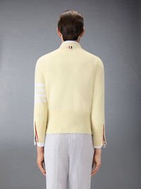 A signature Thom Browne emblem defines our Classic Cashmere 4-Bar V-neck Cardigan. Presented in 100% rich cashmere, this cardigan is a longstanding staple. V-neck Front button closure with striped grosgrain placket 4-bar stripe detail at left sleeve Buttoned side vents and cuffs with signature striped grosgrain trim Signature striped grosgrain loop tab at back of neck Model is 6' 1" (185cm), wearing size 1 100% Cashmere Made in the UK MKC001A-00011-720