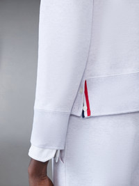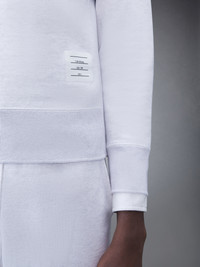 DETAILS & FIT Classic sweatshirt in white cotton loopback with engineered 4-bar stripe detail at left sleeve in navy. Crew neck with V-patch, name tag applique above hem. Ribbed trim at neckline, cuffs, and hem. Buttoned side vents with signature striped grosgrain trim. Signature striped grosgrain loop tab at back of neck. Model is 6' 1"" (185cm), wearing size 0. 100% Cotton Made in Japan MJT021H-00535-118