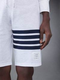 DETAILS & FIT Classic sweatshorts in white cotton loopback with 4-bar stripe detail at left thigh in navy. Drawstring waistband, name tag applique above left cuff, ribbed cuffs. Slip side pockets, single back welt pocket. Signature striped grosgrain loop tab at back waist. Model is 6' 1"" (185cm), wearing size 0. 100% Cotton Made in Japan MJQ012H-00535-118