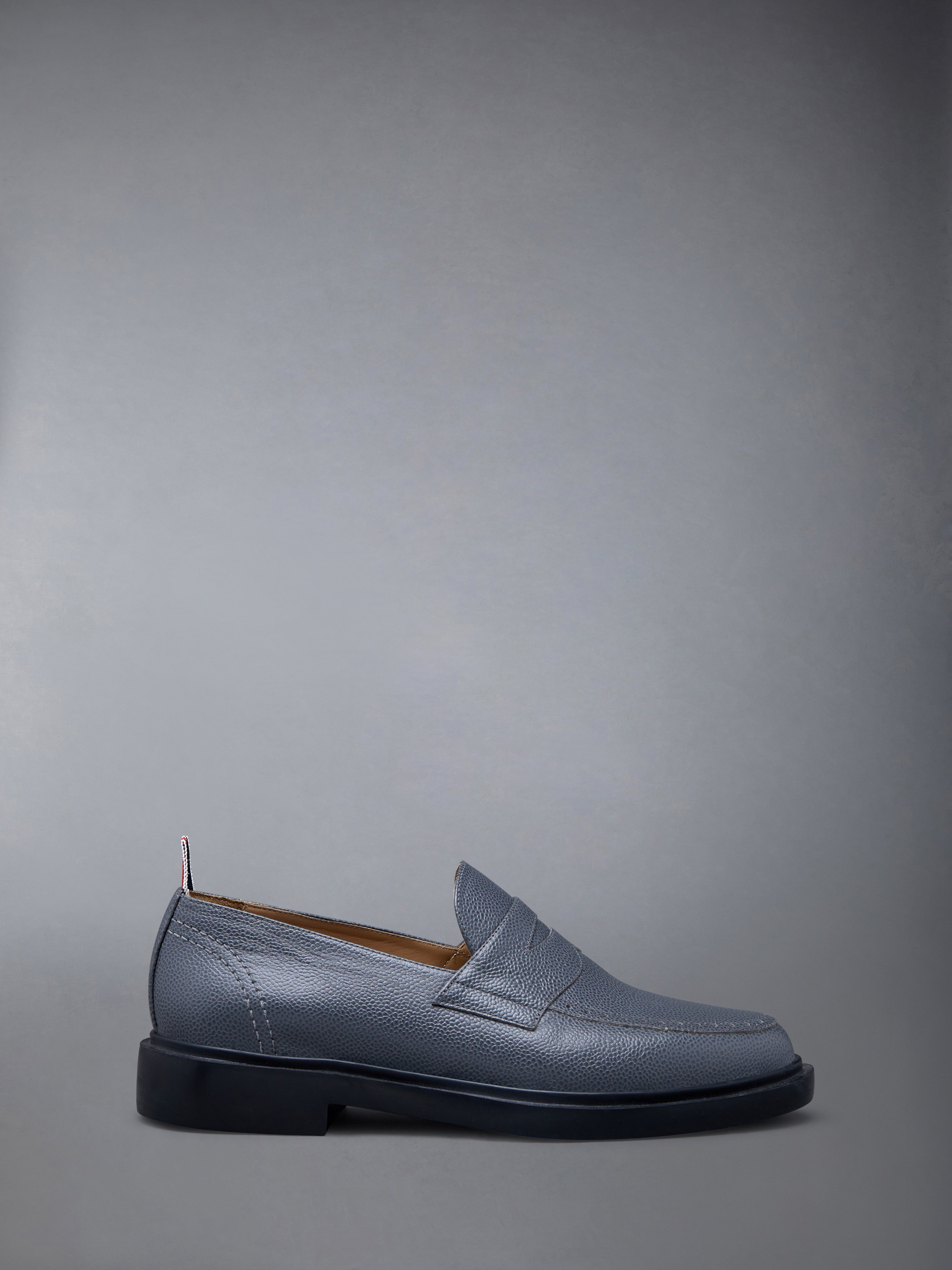 Pebble Grain Leather Rubber Sole Penny Loafer