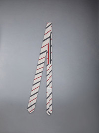 DETAILS & FIT Elevate your Thom Browne suit with our Classic Silk Cotton Tie. Striped grosgrain trim Name tag applique 55% Silk, 45% Cotton Made in Italy MNL001A-F0794-960