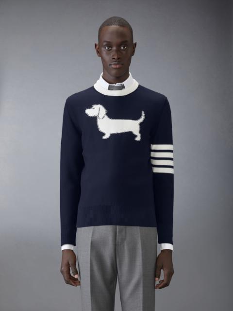 DETAILS & FIT Hector adorns the front of this seasonal pullover. Heralded as the most famous dog muse in fashion, Thom Browne’s very own dachshund served as the inspiration behind this quintessential piece. Perfect for cool spring nights. 4-bar detailing Buttoned cuffs with signature striped grosgrain trim Signature striped grosgrain loop tab Model is 6'1" (185cm), wearing size 1 100% Cotton Made in Italy MKA544A-Y3006-055