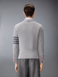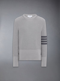 A warm-weather take on a core silhouette, this cotton pullover is garment dyed for nuanced tone and a soft, broken-in hand. Designed for transitional layering, it pairs well with a classic oxford cotton shirt and tie for a polished, collegiate look. Crew neckline Buttoned cuffs and side vents with RWB grosgrain trim 4-bar detailing Signature striped grosgrain loop tab Garment dyed Model is 6'1" (185cm), wearing size 1 100% Cotton Made in Italy MKA580A-Y3065-055