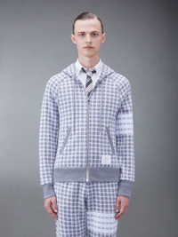 DETAILS & FIT Leisurewear made artful. A signature Thom Browne emblem defines this limited-edition piece — our 4-Bar design, emulated after varsity stripes. Featuring crisp tailoring and a playful gingham pattern, this limited-edition piece will serve as a staple in your casual spring wardrobe. Pair it with our Cotton 4-Bar Gingham Sweatpants. Front zip closure Side slip pockets 4-Bar detailing Nametag applique Model is 6' 1" (185cm), wearing size 1 100% Cotton Combo1: 96% Cotton, 4% Elastane MJT420A-J0116-055