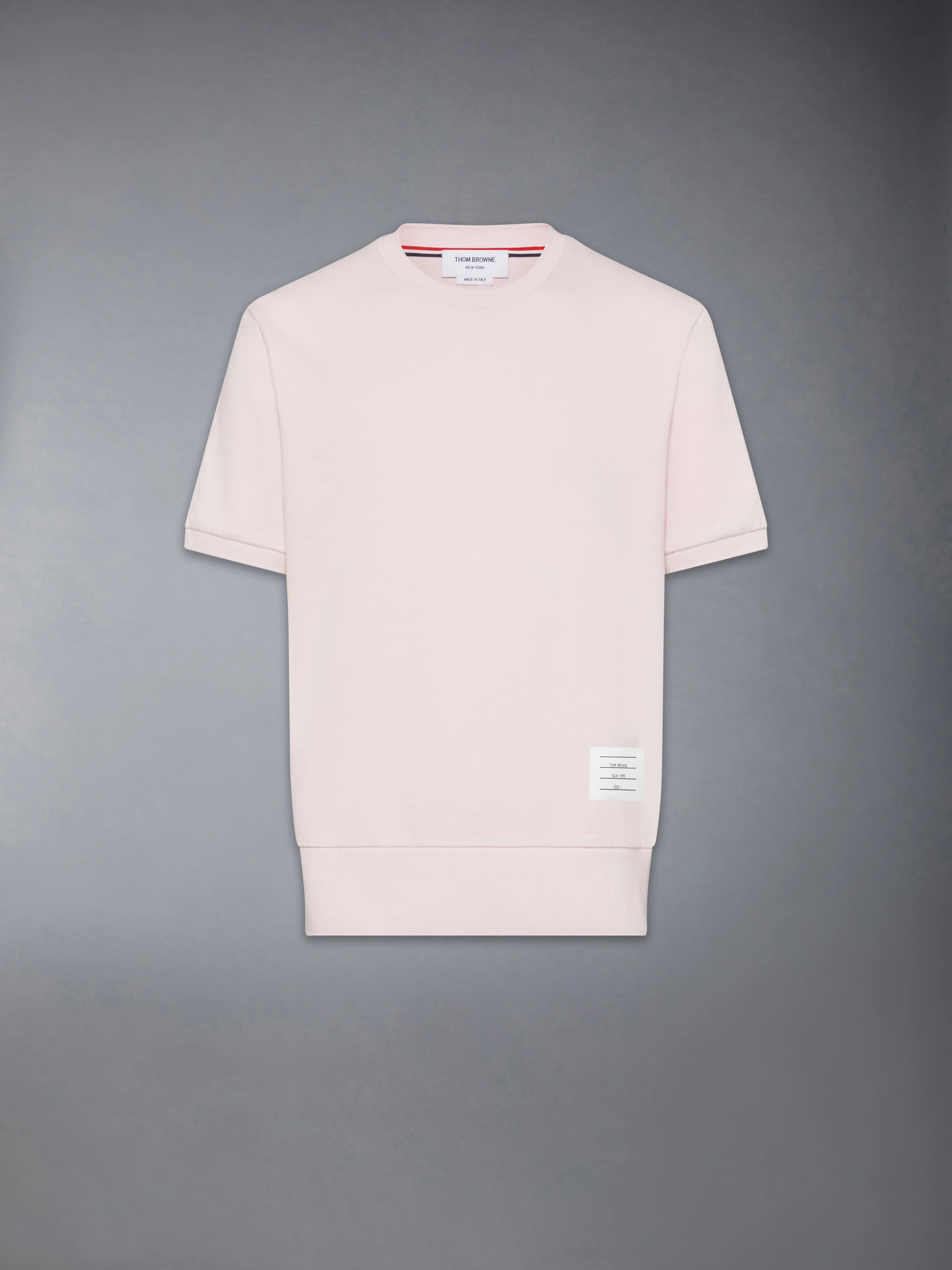 This layering essential is cut in medium-weight jersey for a structured yet comfortable feel. Garment dyed for soft color depth, it features overdyed 4-bar detailing that adds tonal dimension to the iconic motif. A balance of everyday ease and refined construction within Thom Browne’s uniform vocabulary. Ribbed neckline, sleeve cuffs, and hem Overdyed 4-bar detailing Name tag applique Signature striped grosgrain loop tab Garment dyed Model is 6'1" (185cm), wearing size 1 100% Cotton Combo 1: 97% Cotton, 3% Elastane Made in Italy MJS303A-J0253-680