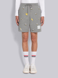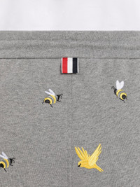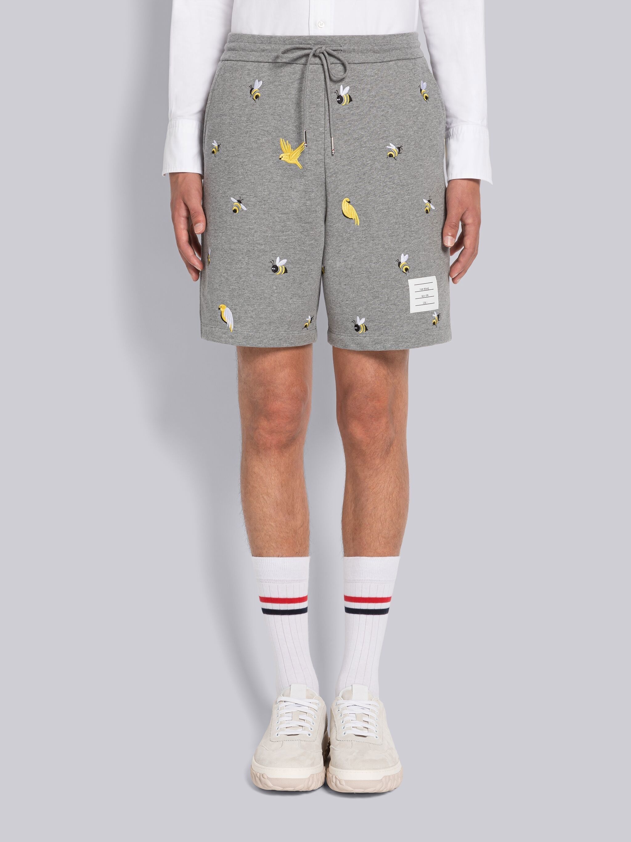 DETAILS & FIT Sweatshorts in grey classic cotton loopback with allover birds and bees embroidery. Drawstring waistband, name tag applique above left cuff, slant side pockets. Signature striped grosgrain loop tab at back waist. Model is 6' 1" (185cm), wearing size 0. 100% Cotton Made in Italy MJQ162E06931035