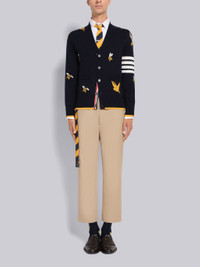 COTTON MERINO BIRDS AND BEES INTARSIA 4-BAR V-NECK CARDIGAN