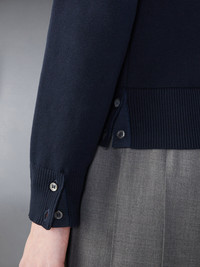 DETAILS & FIT Simple and sophisticated, this luxurious pullover exudes Thom Browne's mastery of tailored excellence. Layer it over our signature dress shirts or tees. Crew neckline Button cuffs and side vents with tonal grosgrain trim Tonal grosgrain loop tab Model is 6' 1" (185cm), wearing size 1 100% Cotton Made in Italy MKA507J-Y3039-415