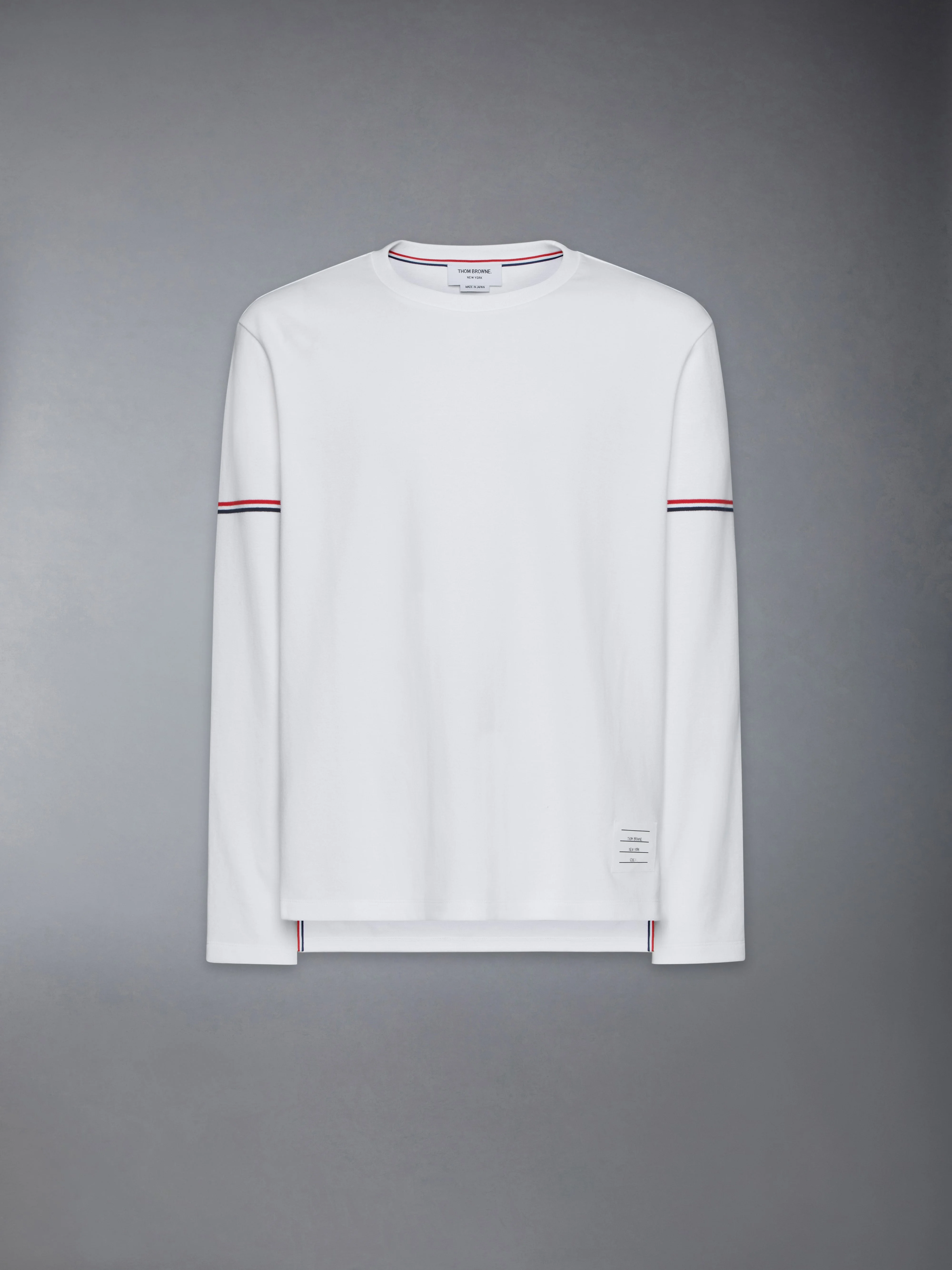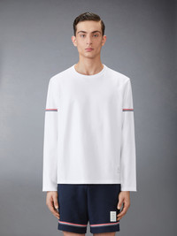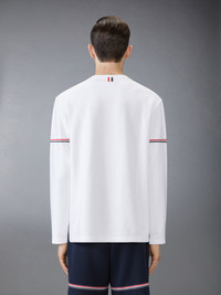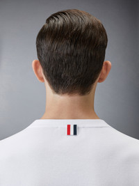 DETAILS & FIT A signature Thom Browne emblem defines this luxe long sleeve — our iconic grosgrain trim. This casual shirt will serve as a staple in your seasonal wardrobe for years to come. Name tag applique Grosgrain armbands Signature striped grosgrain loop tab Model is 6'1" (185cm), wearing size 1 100% Cotton Made in Japan MJS281A-J0199-100