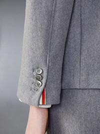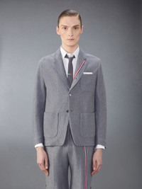 DETAILS & FIT Impeccable craftsmanship, fine fabric, and distinctive Thom Browne emblems make this jacket an essential garment for your seasonal wardrobe. Pair it with any of our trousers. Front button closure 3 Patch pockets Name tag applique Button cuffs with signature striped grosgrain trim Single back vent Signature striped grosgrain loop tab Model is 6' 1" (185cm), wearing size 1 100% Cotton Made in Italy MJT423A-J0139-035