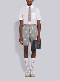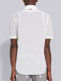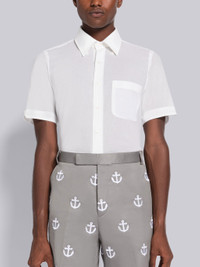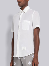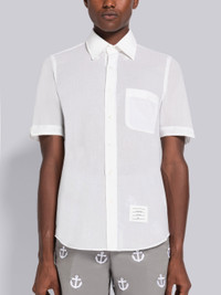 DETAILS & FIT Short sleeve shirt in white cotton voile. Front button closure, button-down point collar, patch shirt pocket. Name tag applique above hem. Pleated back yoke with locker loop. Signature striped grosgrain loop tab at back of neck. Model is 6' 1" (185cm), wearing size 1. 100% Cotton Made in Italy MWS239AF0245100