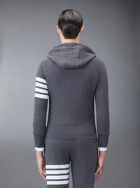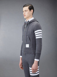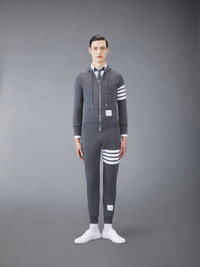 DETAILS & FIT Leisurewear made artful. Our Classic Loopback 4-Bar Full Zip Hoodie is adorned with our iconic 4-Bar detailing emulated after varsity stripes. Brass 2-way zip closure Integrated hood with stripe trim 4-bar stripe detail at left sleeve Kangaroo front pocket with name tag applique Model is 6' 1" (185cm), wearing size 0 100% Cotton Made in Japan MJT022H-00535-025 - CHEST: 100.0cm - WAIST: 89.0cm - SLEEVE LENGTH: 79.3cm
