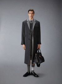 This deconstructed coat embodies Thom Browne’s signature approach to design, subverting classic tailoring with unexpected, avant-garde twists. Frayed hems paired with luxurious fresco fabric challenge tradition while meticulous craftsmanship remains ever-present. Front button closure 3 Front flap pockets Buttoned cuffs with signature striped grosgrain trim Interior pocket with name tag Double vented back with signature striped grosgrain trim Signature striped grosgrain loop tab Model is 6'1" (185cm), wearing size 1 100% Cotton Made in Italy MOC966C-00473-025