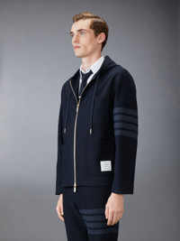DETAILS & FIT This luxurious jacket blends comfort and sophistication, featuring a warm tonal grey that adds a refined touch. Unique yet versatile, it's the perfect piece for layering, balancing relaxed ease with elevated style. Front zip closure 3 Front patch pockets Name tag applique 4-bar detailing Model is 6'1" (185cm), wearing size 1 100% Cotton Made in Italy MJT509A-06772-415