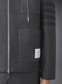 DETAILS & FIT This luxurious jacket blends comfort and sophistication, featuring a warm tonal grey that adds a refined touch. Unique yet versatile, it's the perfect piece for layering, balancing relaxed ease with elevated style. Front zip closure 3 Front patch pockets Name tag applique 4-bar detailing Model is 6'1" (185cm), wearing size 1 100% Cotton Made in Italy MJT509A-06772-035