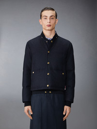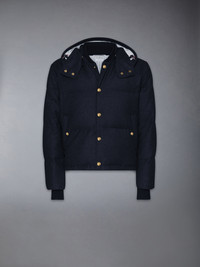 DOWNFILL SNAP FRONT DETACHABLE HOOD BOMBER W/ TONAL GROSGRAIN IN WOOL FLANNEL