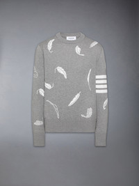 Adorned with woven feathers throughout, this sweater is the perfect piece for transitional dressing. Each feather symbolizes bird migration patterns, seasonal shifts, and new beginnings. Our signature 4-bar detailing nods to midcentury collegiate and sports uniforms, representing discipline, achievement, and tenacity—values central to Thom Browne. 4-bar detailing Buttoned cuffs with signature striped grosgrain trim Buttoned side vents with signature striped grosgrain trim Signature striped grosgrain loop tab Model is 6'1" (185cm), wearing size 1 100% Cotton Made in Italy MKA556A-Y3039-055 MKA556A-Y3039-055