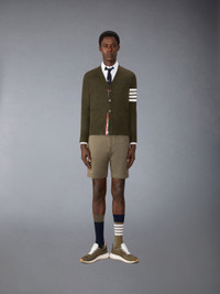 DETAILS & FIT A signature Thom Browne emblem defines this classic cardigan — iconic 4-Bar stripes, synonymous with the brand. Presented in luxe wool, this cardigan is a longstanding staple. V-neckline 4-bar detailing Front button closure with signature striped grosgrain placket Front slip pockets Buttoned cuffs and side vents with signature striped grosgrain trim Signature striped grosgrain loop tab Model is 6' 1" (185cm), wearing size 1 100% Lana Merino Superfine 130'S Mulesing Free, 100% Virgin Wool, 100% Wool Made in Italy MKC002A-Y1014-322