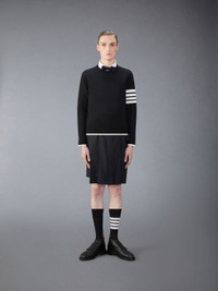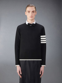 DETAILS & FIT This piece features a signature Thom Browne emblem—our 4-Bar design, emulated after varsity stripes. Pair it with Thom Browne trousers or sweatpants to dress it up or down. Crew neckline 4-bar detailing Jersey stitch Tipping hem Buttoned cuffs and side vents with signature striped grosgrain trim Signature striped grosgrain loop tab Model is 6' 1" (185cm), wearing size 1 100% Virgin Wool Made in Italy MKA002D-Y1014-001