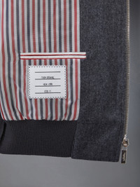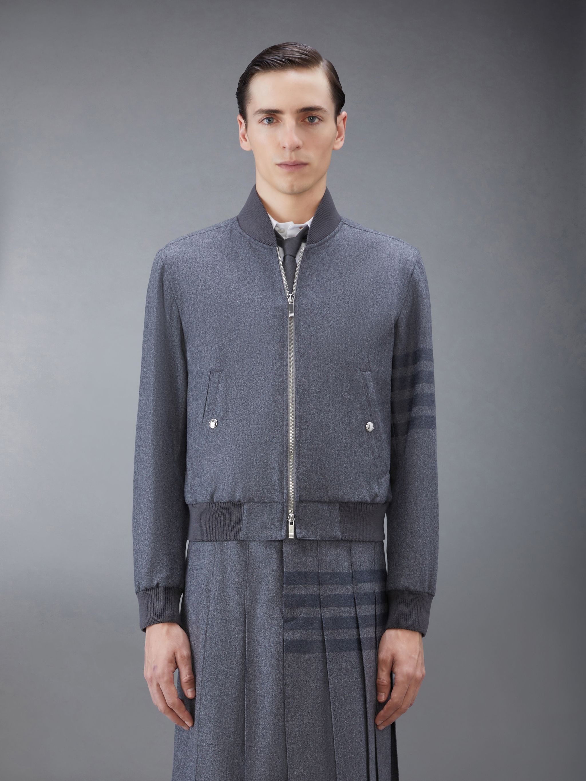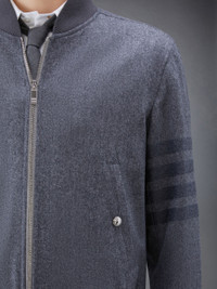 DETAILS & FIT Our Wool Cashmere Blend Flannel 4-Bar Knit Rib Blouson Jacket is a light jacket perfect for cooler months. Pair it with any of our classic shirts 4-bar stripe detail Double sided zip-up closure 2 snap pockets Ribbed neckline, cuffs, and hem Striped lining with interior name tag Signature striped grosgrain loop tab at back of neck Model is 6' 1" (186cm), wearing size 0 95% Wool, 5% Cashmere Made in Japan MJO030A-06393-035