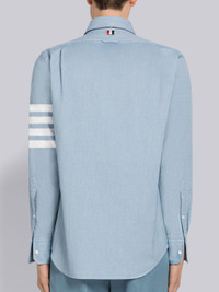 DETAILS & FIT Straight fit shirt in dark blue flannel with 4-bar stripe detail at left sleeve in white. Front button closure, button down point collar, patch chest pocket, name tag applique above shirttail hem, buttoned cuffs. Seamed back yoke with locker loop. Signature striped grosgrain loop tab at back of neck. Model is 6' 1" (185cm), wearing size 1. 100% Cotton Made in Italy MWL272A05245420