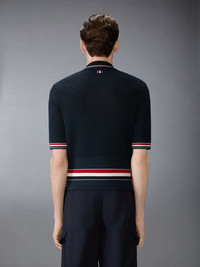 Knit in high-twist cotton with a float ripple stitch, this polo features an airy, architectural surface that plays with texture and depth. The lightweight construction makes it ideal for layering through changing seasons—wear under the Cotton Suiting Armband Unconstructed Sport Coat for a sharp interplay of structure and texture. Partial front button closure Ribbed collar with RWB tipping Engineered RWB stripe at cuffs and hem Buttoned side vents with RWB grosgrain trim Signature striped grosgrain loop tab Model is 6'1" (185cm), wearing size 1 100% Cotton Made in Italy MKP155A-Y3009-415