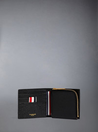 Black Fold-Out Billfold Half-Zip Coin Purse Brass Hardware Four Card Slits Pebble Grain Leather Single Bill Compartment Signature Grosgrain Loop Tab MAW146A-00198-001