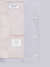 DETAILS & FIT Golf jacket in Fun-Mix seersucker. Brass front button closure, topstitched collar, 3 patch front pockets. Striped lining with interior pocket and name tag. Signature striped grosgrain loop tab at back of neck. Model is 6' 1" (185cm), wearing size 0. 100% Cotton Made in Italy MJO201F00572415