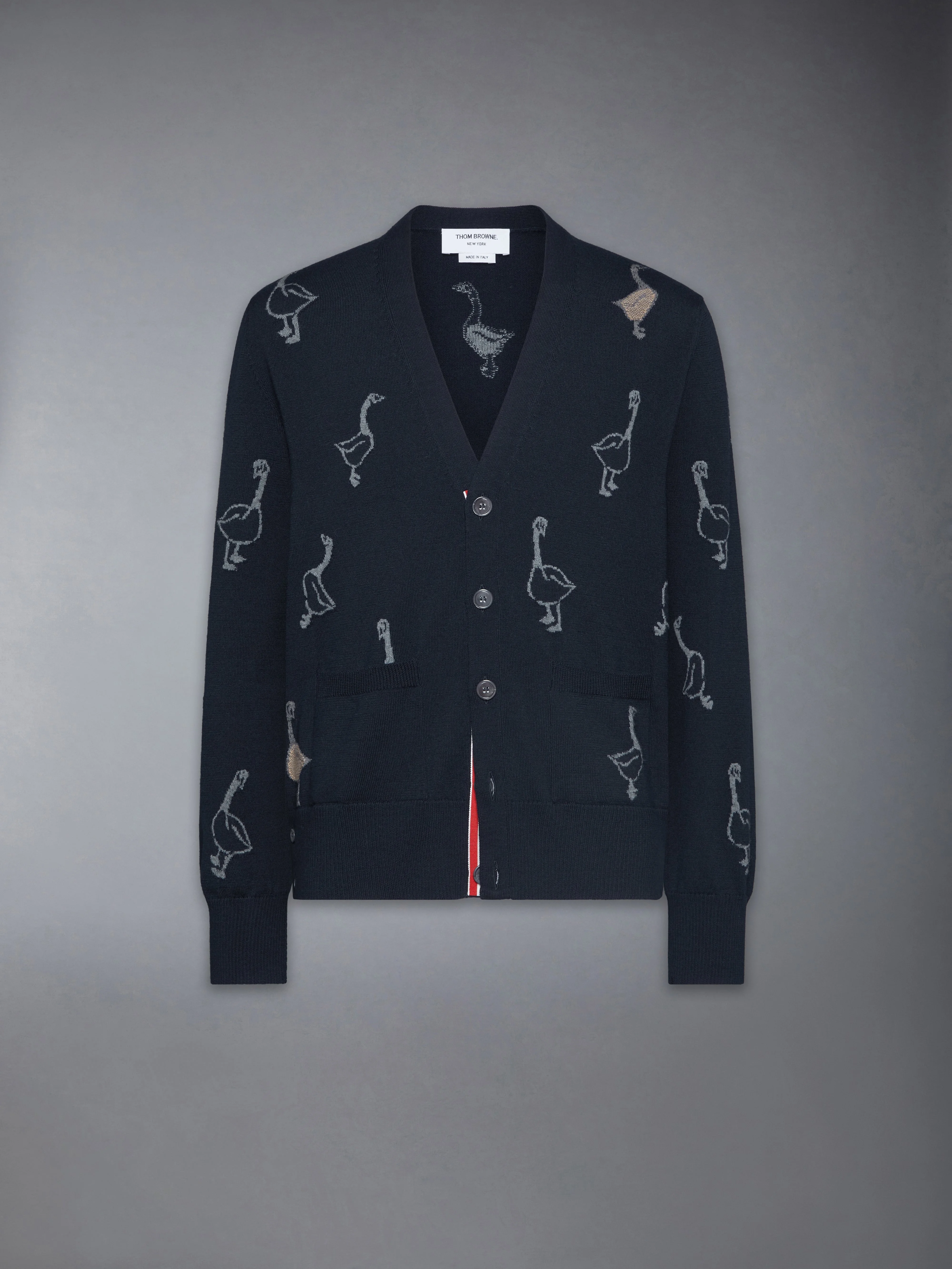 GEESE INTARSIA MERINO WOOL RELAXED FIT V NECK CARDIGAN
