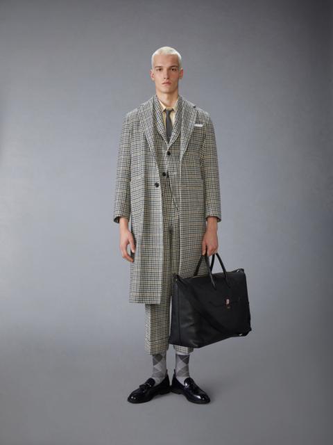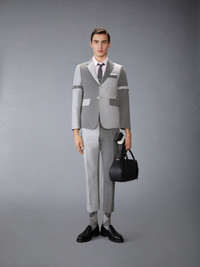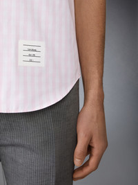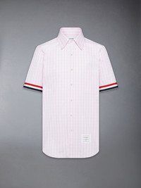 A subtle gingham pattern makes you do a double take—a testament to Thom’s meticulous eye for detail and perfectionism. Elevated with our signature grosgrain trim at the cuffs, this shirt blends classic design with a Thom Browne twist. A sizable chest pocket offers functional storage, while our iconic name tag applique at the hem adds the finishing touch. Front button closure Chest patch pocket Name tag applique Grosgrain trim at sleeves Pleated back yoke with locker loop Signature striped grosgrain loop tab Model is 6'1" (185cm), wearing size 1 100% Cotton Made in Italy MWS245A-F0998-680