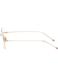 Square titanium-frame optical glasses. · Adjustable nose pads · Enameled tricolor stripes at temple tips · Includes case · Size: 54.20 144 Supplier color: White gold Titanium. Made in Japan 252381M133026
