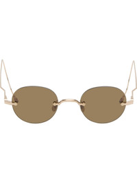 Round rimless 12k gold-plated titanium-frame sunglasses. · Brown lenses · 100% UVA/UVB protection · Adjustable metal nose pads · Enameled tricolor stripes at temple tips · Includes case · Size: 47.22 120 Supplier color: White Gold 12k gold-plated titanium. Made in Japan 252381M134003