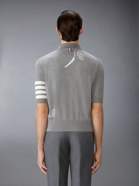 Adorned with woven feathers throughout, this polo is the perfect piece for transitional dressing. Each feather symbolizes bird migration patterns, seasonal shifts, and new beginnings. Our signature 4-bar detailing nods to midcentury collegiate and sports uniforms, representing discipline, achievement, and tenacity—values central to Thom Browne. Partial front button closure 4-bar detailing Buttoned side vents with signature striped grosgrain trim Signature striped grosgrain loop tab Model is 6'1" (185cm), wearing size 1 100% Cotton Made in Italy MKP145A-Y3039-055 MKP145A-Y3039-055