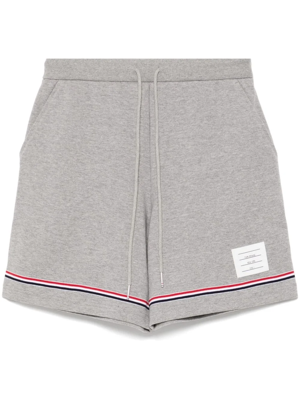 mid thigh shorts Highlights - Beluga grey - Elasticated drawstring waistband - Two side inset pockets - Stripe detailing Imported Composition Cotton 100% SIZE & FIT FittingInformation Designed for relaxed fit, offering a comfortable loose fit over the leg Adjust this piece’s waistband to your preference using the drawstring Made from a midweight non-stretch fabric, this piece offers minimal elasticity when worn