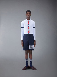 DETAILS & FIT A springtime essential, our Oxford Long Sleeve Armband Shirt exhibits quality craftsmanship and meticulous tailoring. Front button closure Single patch pocket Signature striped grosgrain loop tab Pleated Back Yoke with Locker Loop Nametag Applique Above Hem Grosgrain armbands Model is 6' 1" (185cm), wearing size 1 100% Cotton MWL393O-F0313-480