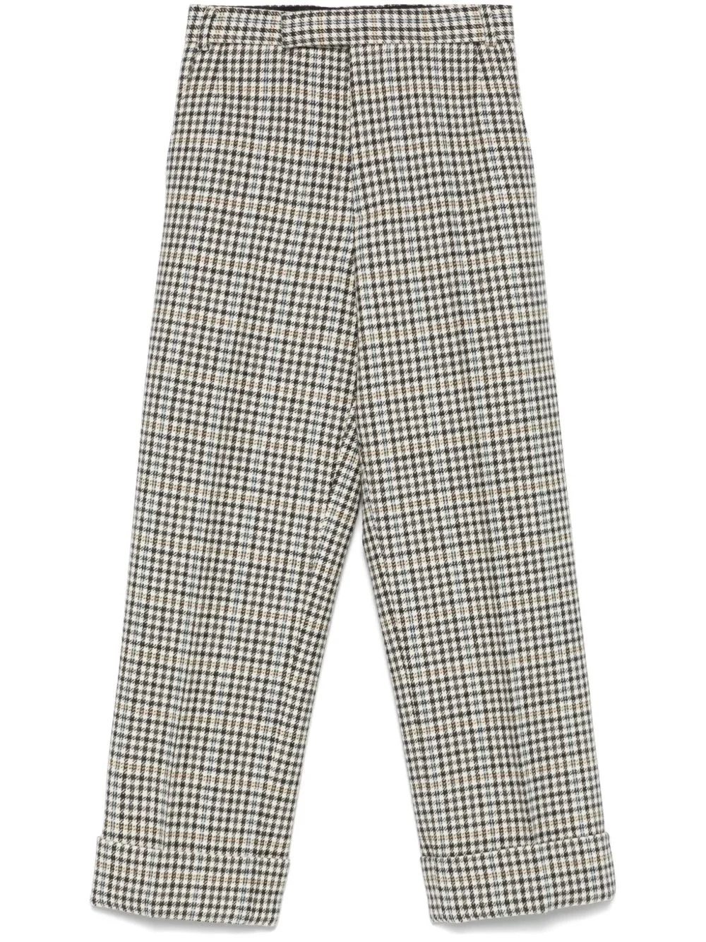 gunclub-check tweed trousers Highlights - Ecru - Concealed front fastening - Belt loops - Two side slit pockets - Two rear button-fastening jetted pockets Made in Italy Composition Outer: Wool 100% Lining: Cupro 100% SIZE & FIT Model measurements Height 6 ft 2 in(1.87 m) Bust/Chest 37.79 in(96 cm) Hips 37.79 in(96 cm) Waist 30.31 in(77 cm) FittingInformation Designed for a straight-leg, allowing for an unrestricted and comfortable fit over the leg Cropped in length