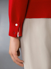 A refined reinterpretation of the hoodie, crafted in fine merino wool for lightweight warmth and softness. At the back, an intarsia rendering of Hector—the beloved dachshund who has stood at the heart of Thom Browne’s universe for a decade—adds a playful sense of presence. Pair with chino trousers and brogues for a blend of ease and structure. Front two-way zip closure Shaped drawstring hood Slip hand pockets Buttoned cuffs with RWB grosgrain trim Hector intarsia 4-bar detailing Signature striped grosgrain loop tab Model is 6'1" (185cm), wearing size 1 100% Virgin Wool Made in Italy MKT022A-Y1029-600