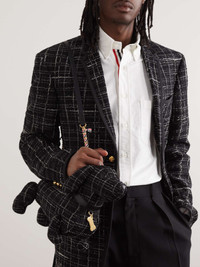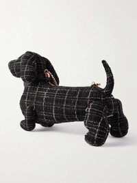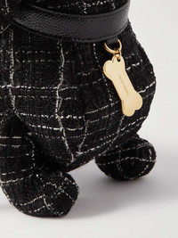 Thom Browne's pet dachshund Hector serves as the muse for this messenger bag. Crafted from classic tweed, it's constructed in his likeness, complete with a collar and bone medal. The leather shoulder strap is detailed with the label's signature stripes and chain-link hardware. Size & Fit - Length: 11cm / 4.3in - Width: 30cm / 11.8in Details & Care - Black and white tweed, black leather (Calf) - Leather, gold-tone and webbing shoulder strap - Fully lined - Zip fastening - Comes with a dust bag - Made in Switzerland