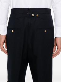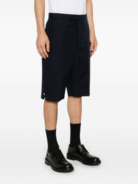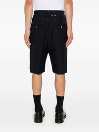 high-rise backstrap shorts Highlights - Navy blue - Virgin wool - Canvas - Pressed crease - Two side slit pockets - Two rear button-fastening jetted pockets - Adjustable strap to the rear - Rwb loop - Short side slits - Decorative button detailing - Rwb stripe lining - Embossed gold-tone buttons - Concealed button fly and hook fastening Imported Composition Lining: Cupro 100% Outer: Virgin Wool 100% SIZE & FIT Model measurements Height 6 ft 1 in(1.85 m) Bust/Chest 35.82 in(91 cm) Hips 37.79 in(96 cm) Waist 29.13 in(74 cm) FittingInformation Designed for a straight-leg fit, offering an unrestricted and comfortable fit over the leg The adjustable tabs allow for fitted preferences Made from a midweight non-stretch fabric This piece fits true to size – take your usual size