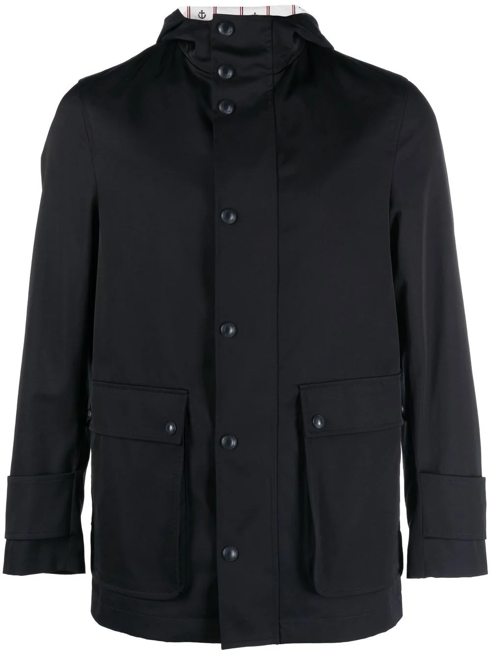 hooded parka coat A Thom Browne signature, this parka coat is finished with cropped sleeves, adding an unexpected twist to the hooded piece. Made in Italy Composition Outer: Polyester 68%, Cotton 32% Lining: Cotton 100%, Viscose 100% SIZE & FIT Model measurements Height 6 ft 2 in(1.88 m) Bust/Chest 36.61 in(93 cm) Hips 35.82 in(91 cm) Waist 27.95 in(71 cm) FittingInformation This piece fits true to size. We recommend you get your regular size Cut for a loose fit Made with a mid-weight non-stretch fabric